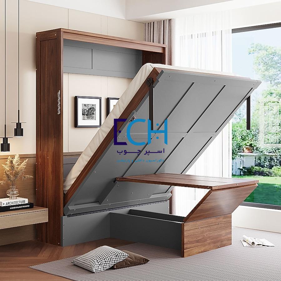 این مدل برای اتاق نوجوان یا دانشجویی بینظیر است. بدون اینکه فضای اتاق شلوغ شود، هم تخت دارید و هم یک میز تحریر کاملاً کاربردی. مکانیزم این مدلها طوری طراحی میشود که با باز شدن تخت، میز ثابت میماند یا بهصورت کاملاً هوشمندانه جمع میشود.