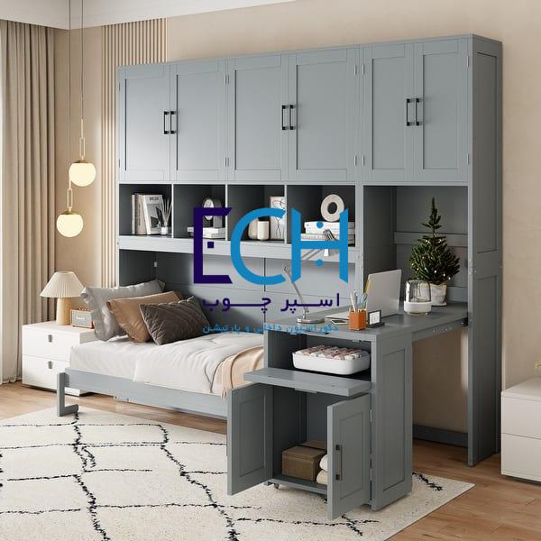 | تخت کم جا همراه کمد و کشو | ۳۰ تا ۵۲ میلیون تومان | یک یونیت کامل چندمنظوره |